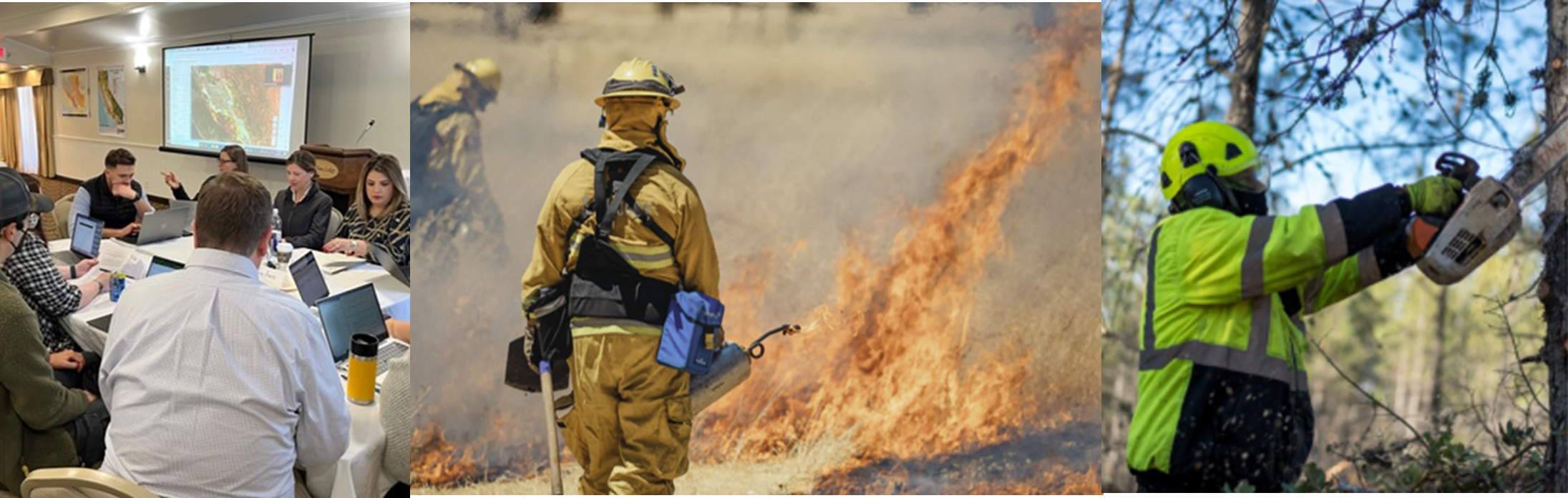 Figure 2: Following the planning phase (left), actions included prescribed fires (middle) and thinning and removal of invasive species (right). Source: The Climate Drive.